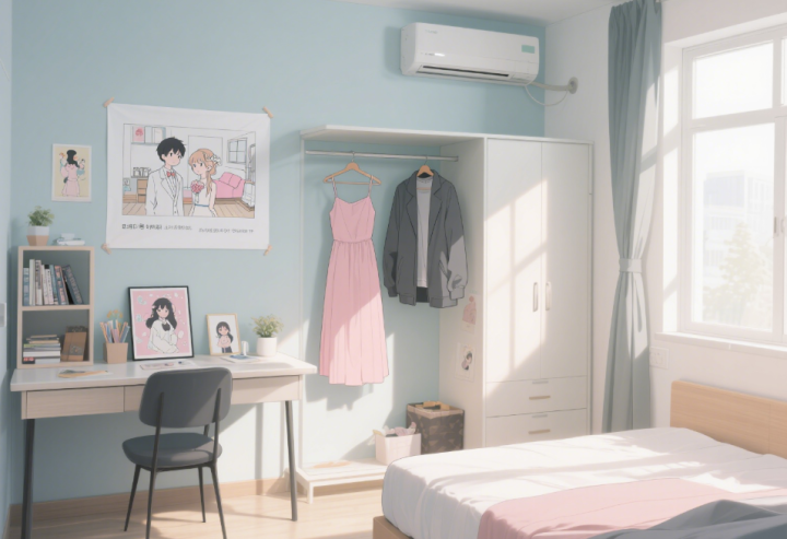 如今,我们的出租屋里多了很多新东西:墙上挂着我们一起画的婚房设计图,书桌上放着我做的插画周边,衣柜里再也没有单独叠放的白衬衫 —— 我的浅粉色裙子和他的深灰色外套挨在一起,像我们终于凑齐的两半拼图。