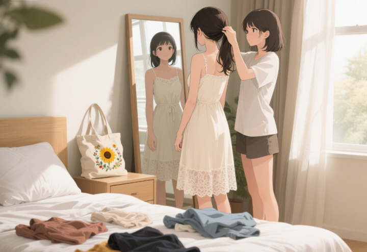 我跟苏晓说了这件事,她比我还激动,周六早上早早地就来敲我的门,手里拎着一个大购物袋,里面装着好几件衣服。“今天必须给你好好打扮一下,” 她把我推进卧室,“你平时总穿休闲装,今天穿裙子,显温柔。”